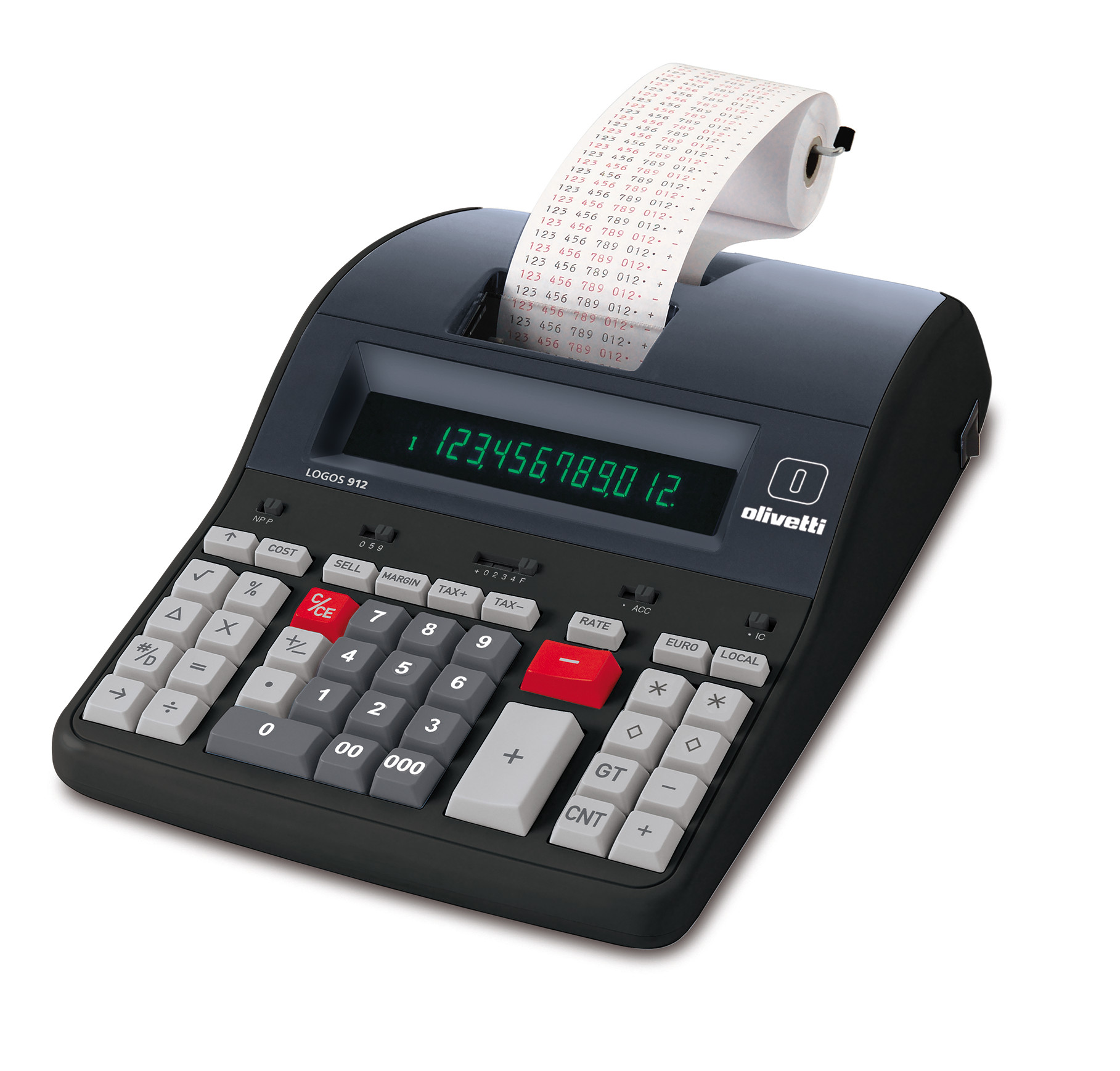 Calcolatrice caratterizzata dall’esclusiva logica di calcolo Olivetti “GT Logic”.