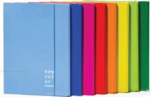 Cartelle in cartoncino lucido con colori vivaci, a 3 lembi con elastico. Disponibili nel formato 25x35 cm.
