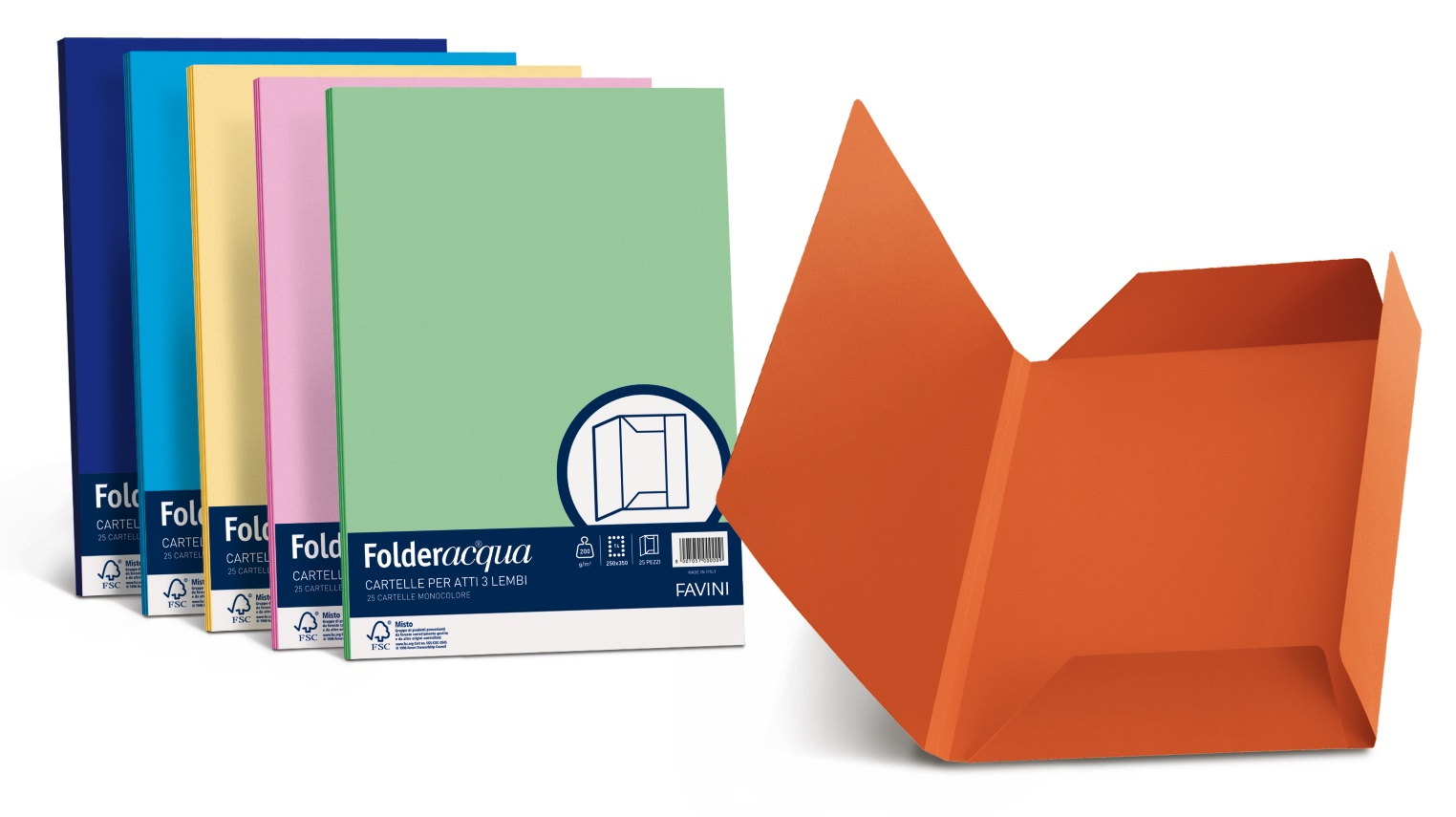 Cartelle in cartoncino bristol da 200 g/mq. Formato cartelle con 3 lembi 24,5x34,5 cm in colori brillanti assortiti.