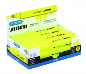 Evidenziatore con punta a scalpello, fusto in plastica, colori brillanti. Evidenzia su tutti i tipi di carta, comprese carte chimiche e termiche.