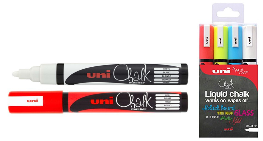 Marcatore a gesso liquido con inchiostro pigmentato cancellabile, resistente alla luce e all’acqua.
