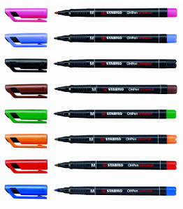 Penna a punta sintetica ricaricabile disponibile in 3 tratti. Inchiostro indelebile particolarmente indicato per scrittura a fogli di acetato, carta da lucido e tutte le superfici lisce come metalli, vetro, ecc..