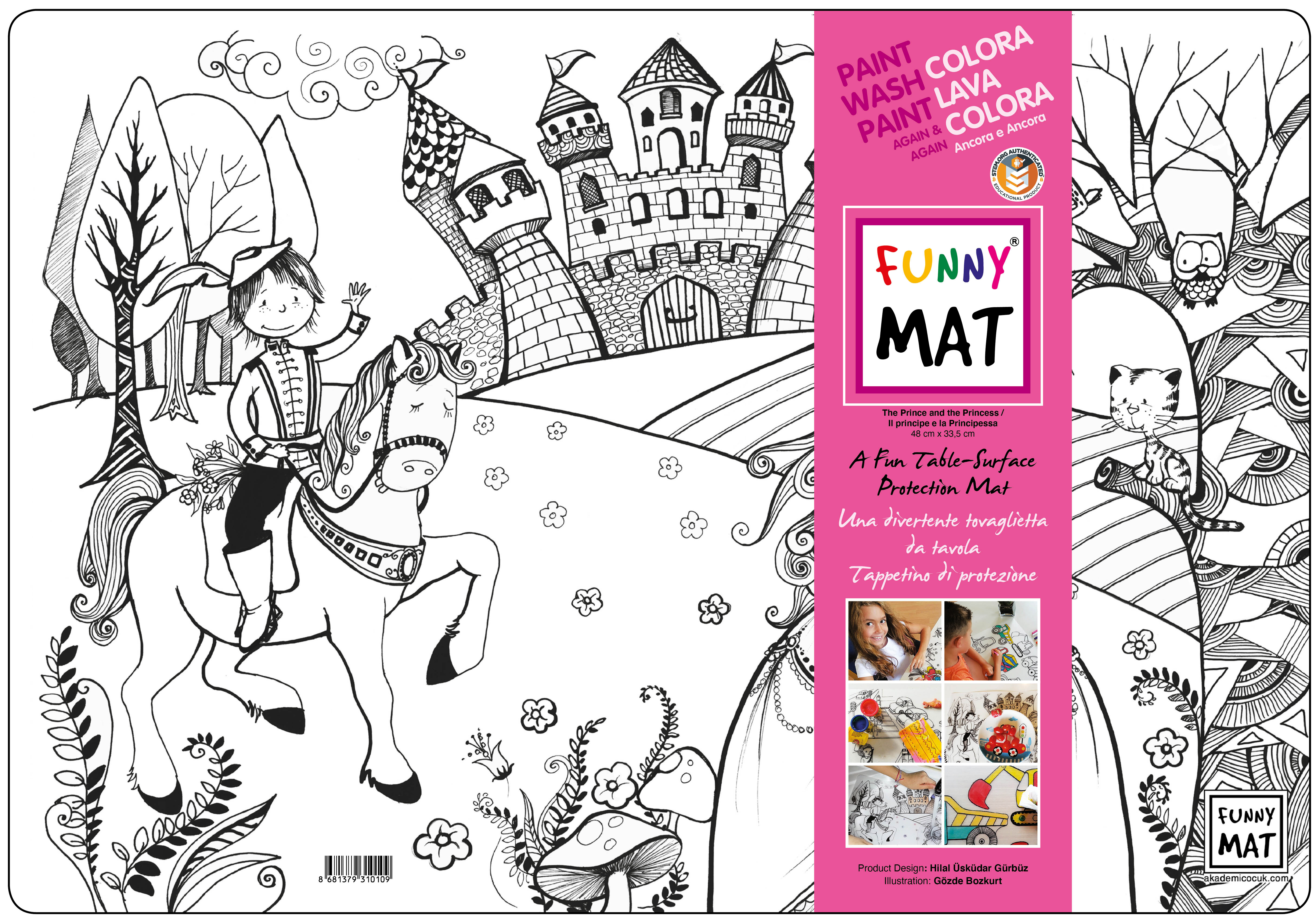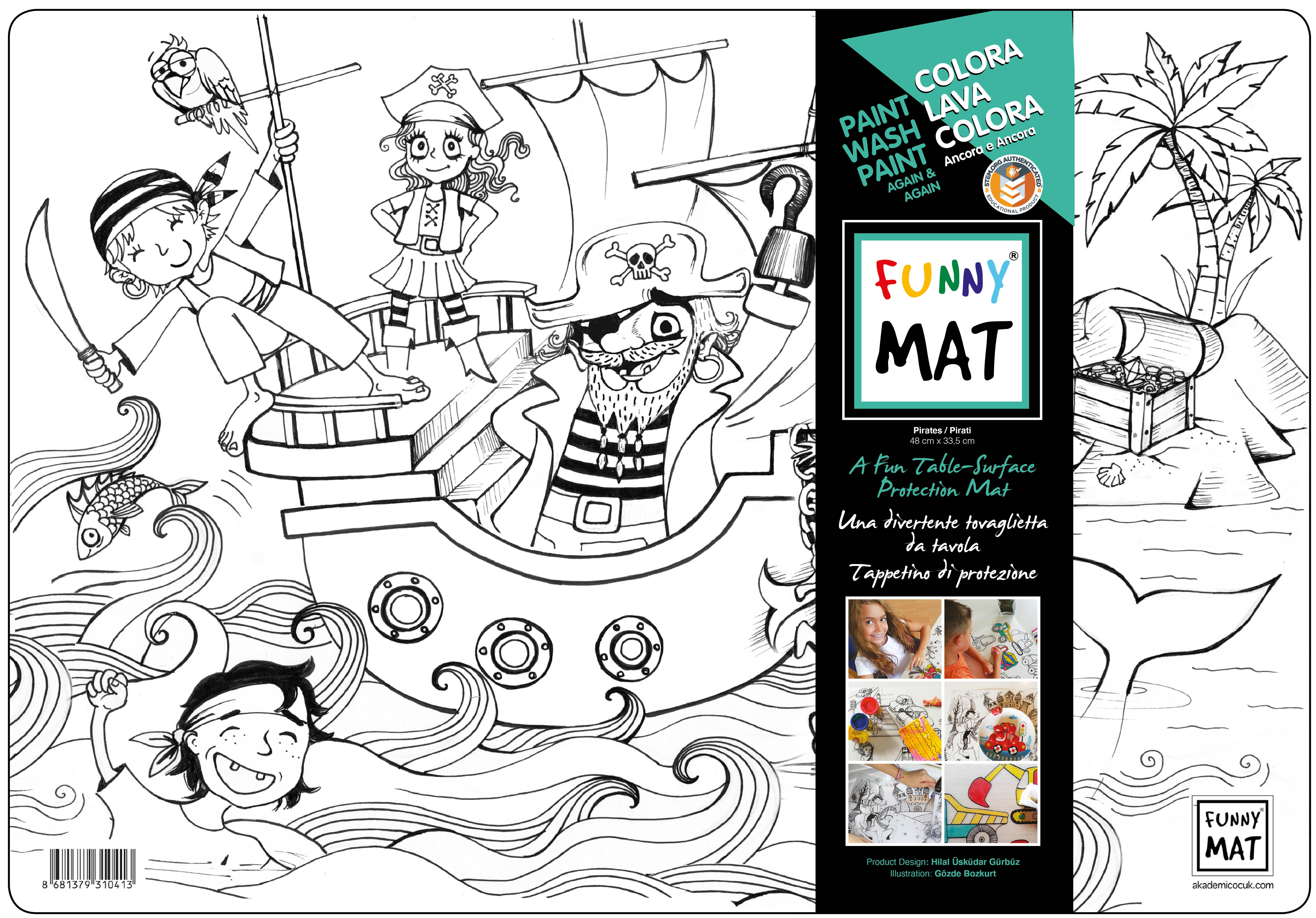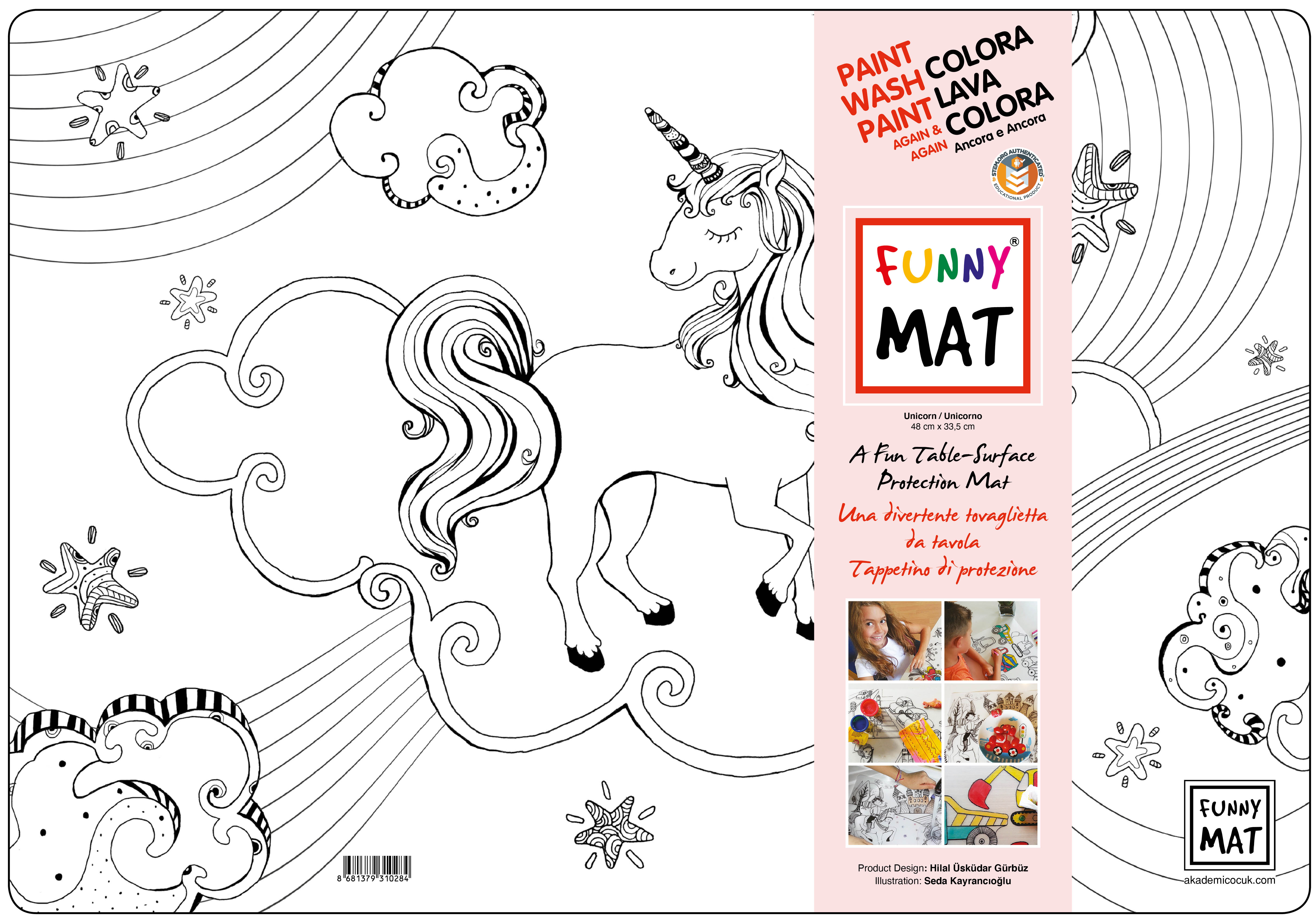 Funny Mat è il compagno perfetto per ogni attività! Realizzato in resistente polipropilene stampato, questo tappetino dalle dimensioni di 48x33,5 cm protegge tavoli e superfici, offrendo allo stesso tempo infinite possibilità di gioco e creatività. È ideale per divertirsi a tavola, dipingere, modellare
