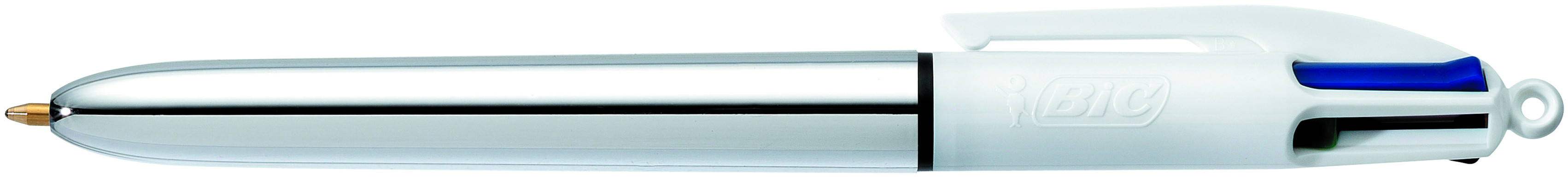 Penna a sfera a 4 colori a scatto con punta media . Inchiostro nero, blu, rosso e verde in un'unica penna. Lunghezza massima di scrittura : 8000 metri.