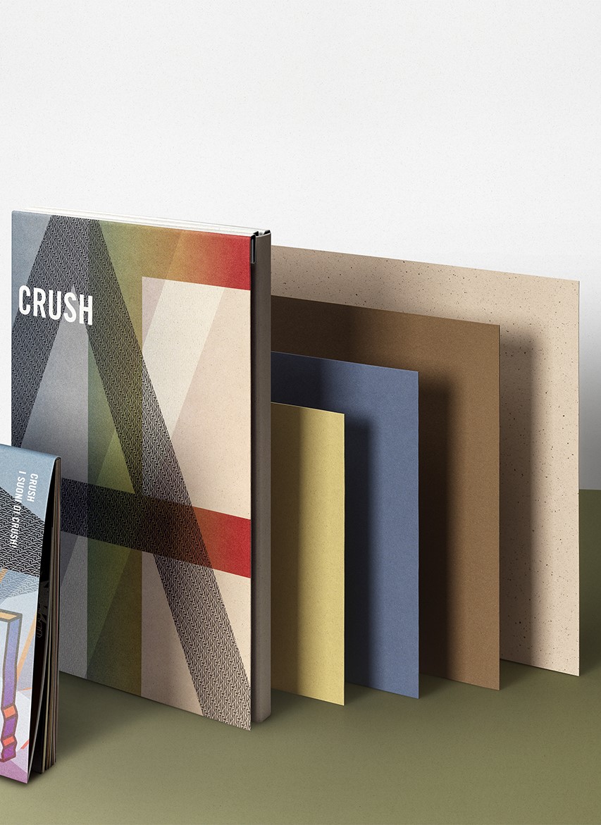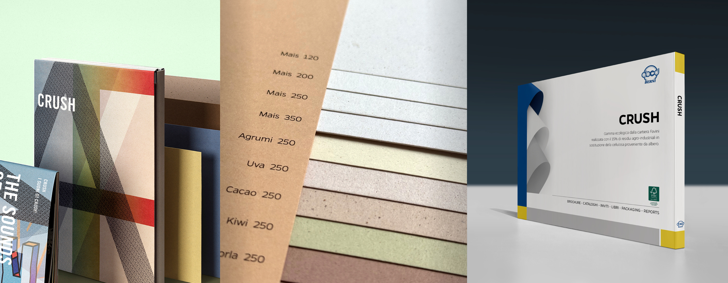 I residui di agrumi, noce di cocco, cacao, uva, ciliegie, lavanda, mais, olive, caffè, kiwi, nocciole e mandorle sono le materie prime che, salvate dalla discarica, utilizziamo per produrre queste carte dall’aspetto estetico e tattile inusuale.