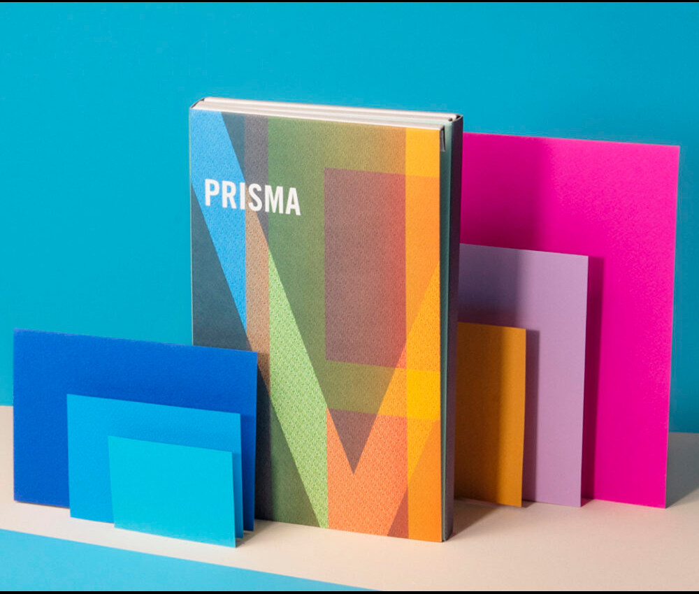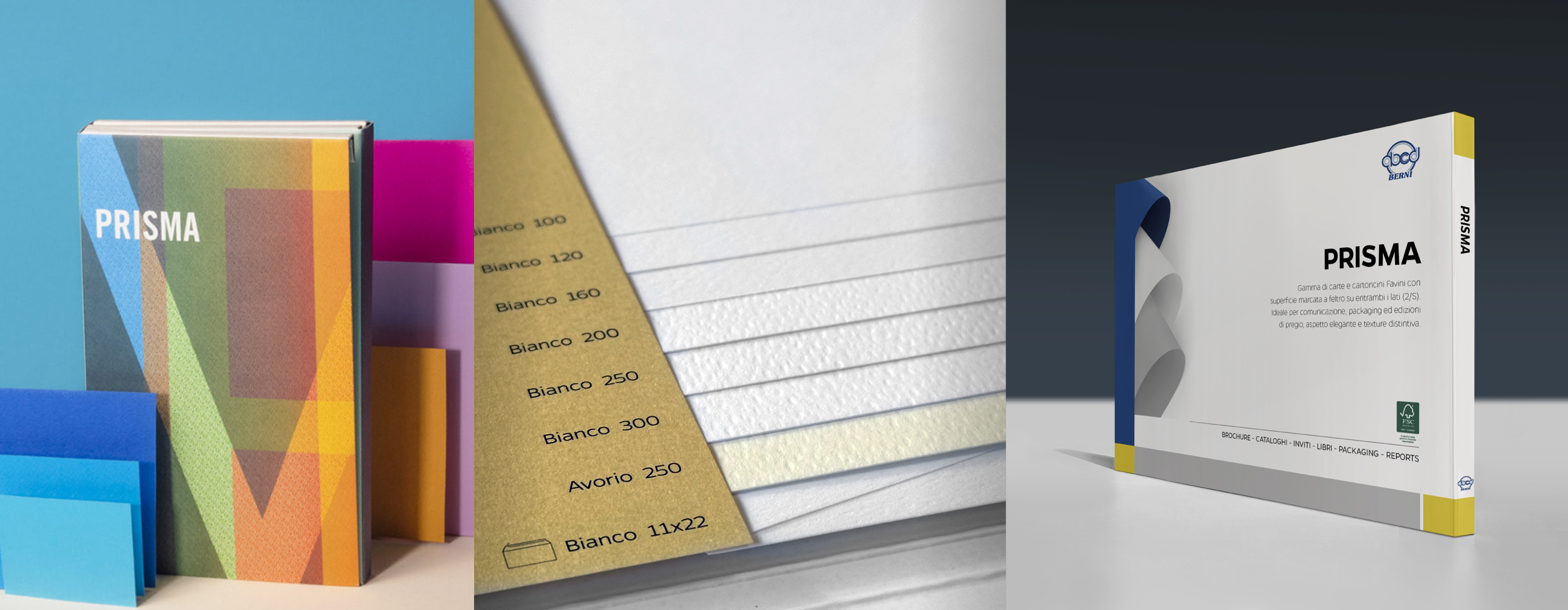 Prisma è una carta naturale di pura cellulosa ECF, certificata FSC. Feltromarcata su entrambi i lati, la trama superficiale è leggera e uniforme per un incredibile effetto a "buccia d'arancia".